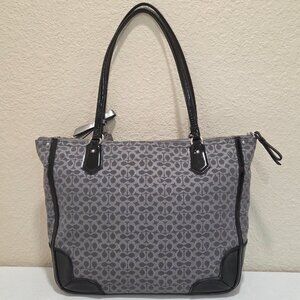 Coach Fall Bag Gray Metallic Fabric Black Patent Leather Double Straps