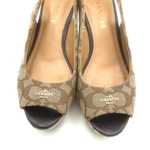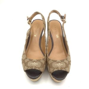 Coach Ferry Signature Jaquard Fabric Wedges Platform Sandals 6.5B