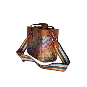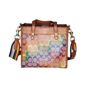 Coach Field Tote 22" Pride Rainbow Tan Natural Multi Signature Canvas C5142