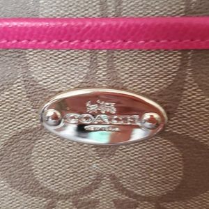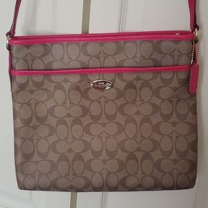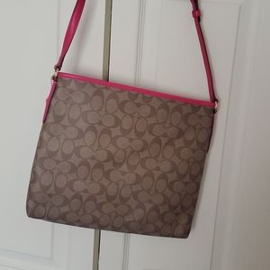 Like new! Used once! Gorgeous coach file bag! Signature coach print with hot pink detail and strap. Pockets inside to organize your things. Really nice bag!
