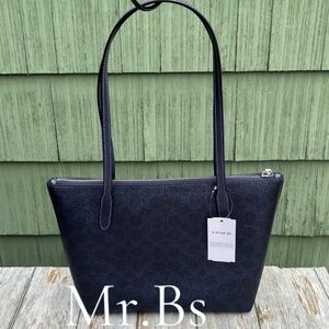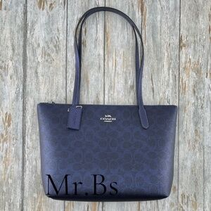 Coach Fiona Zip Tote Bag in Blue Metallic Purse