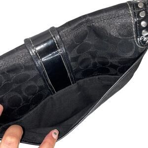 Unique Coach Vintage Monogram Canvas & Leather Studded Black Shoulder Handbag Sack Purse Excellent Condition