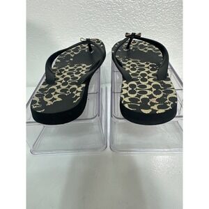 Coach Flip Flops Signature CC Print Black Beige Sandals Size 8B