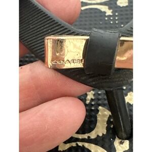 Step into effortless style with these chic Coach flip flops. A captivating signature "CC" print in beige adorns the black base, offering a touch of luxury to your casual look. The sleek black straps are detailed with a gold-tone accent featuring the iconic Coach logo, elevating the design with a hint of sophistication. These flip flops are perfect for a relaxed day at the beach, a casual outing with friends, or simply lounging by the pool. Experience comfort and style combined with these must-have summer essentials.