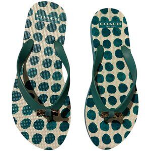 Coach Flip Flops Women Size 5/6 Green Dot Bow Flat Slip On Thong Sandal New York