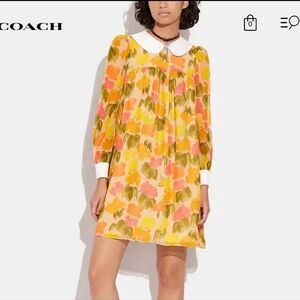 Coach Floral Babydoll Long Sleeve Dress with Peter Pan Collar