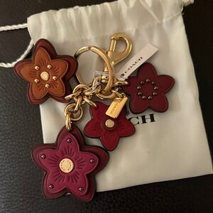 Coach Floral Keychain with Gold Accents