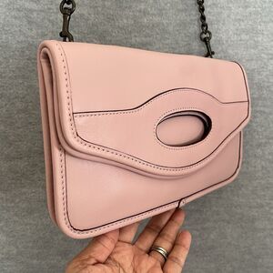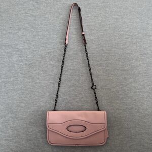 Coach Foldover Cut Out Clutch Crossbody Carnation Pink Leather Bag Chain Strap