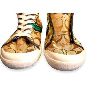 Coach Folly Signature C Sneakers Brown/Green Stripe & Blue Purple Heel Womenโs 8
