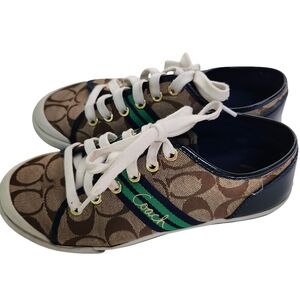 Coach Folly Signature Fashion Sneakers Tan Navy Green Size 6.5B