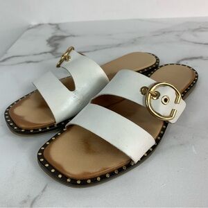 ❤️Lovely Coach & Four Aquila Slide Sandals White Leather Upper& Lining Made in Italy 7.5
