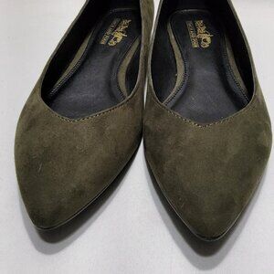Coach & Four Green Suede Ballet Flat Pointed Toe Size 6 Gold Heel New in Box