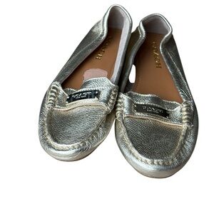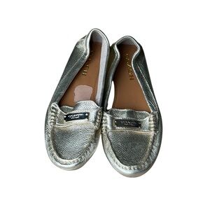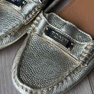 Coach Fredrica Metallic Gold Pebbled Leather Womens Loafers Size 6.5 Flats