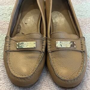 Coach Fredrica Tan Pebbled Leather Driving Loafers Slip-On Flats Preppy Heritage