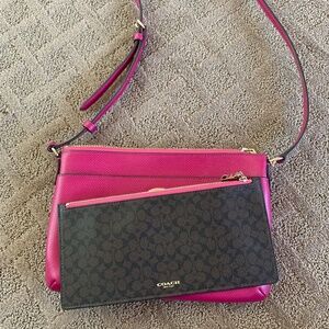 Coach Fuchsia Crossbody Bag with Bonus Wallet