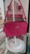 Vibrant fuchsia leather wristlet. Sleek design with silver accents. Ideal for versatile use.