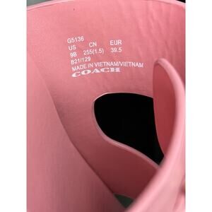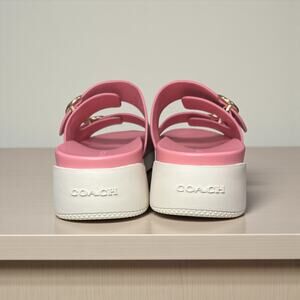 These Coach G5136 Gable Leather Sandals in Size 9B in the colorway Bubblegum are an elevated take on the slide. Featuring leather uppers with a Horse & Carriage gold medallion and platform rubber sole, these sandals would look great dressed up or down. If you love and appreciate Coach style and quality, you need these sandals in your collection!