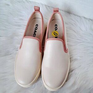Brand new store display shoes, no tag no box. Authentic Coach G5310 Slip on women shoes size 9B (Medium Foot) white ivory and pink color. Pet and smoke free home.