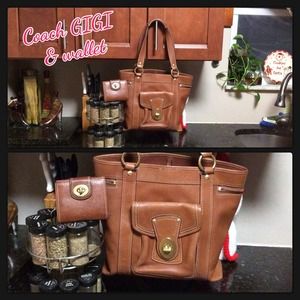 Coach GIGI and matching wallet, make famous by movie 13 going on 30 with Anne Hathaway and in the Devil wears Prada, see movie still pics, I have another listing in my closet showing it. Price is firm or will trade for red leather Coach or flagship Coach or another larger whiskey Coach, I will only trade this for a another leather bag of like value.