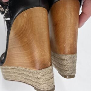 Coach Gala Black Leather Wedges Espadrille Wood Size 10