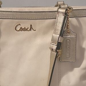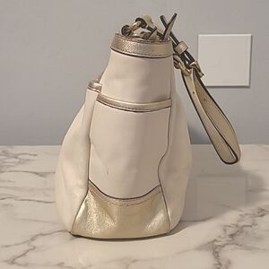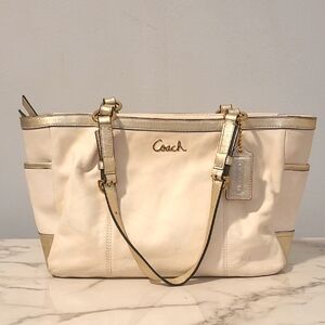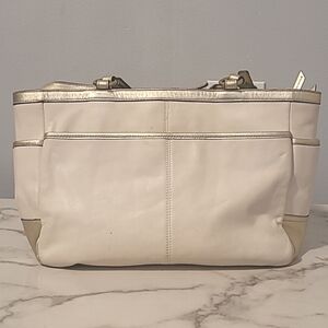 Coach Gallery Cream Metallic Soft Gold Leather Shoulder Bag Purse Tote Timeless