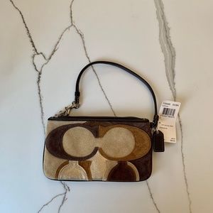 Coach Gallery Optic Signature Suede Leather Wristlet