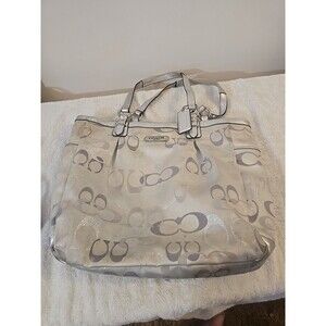 Coach Gallery Optic Silver Metalic Signature Tote Shoulder Handbag