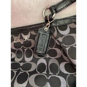 Coach Gallery Signature Tote F18106 Authentic Certification EUC Black Silver