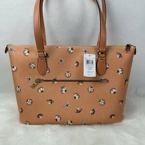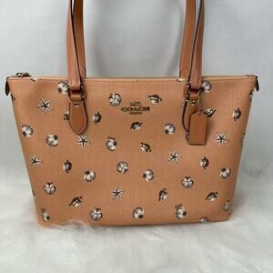 Coach Gallery Tote Bag With Shell Print In Canvas/Coral/Sunrise CBM12 NWT