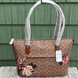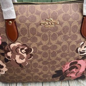 Coach Gallery Tote Shoulder Bag In Signature Canvas With Rose Print purse