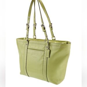 Coach Gallery Tote in Lime Green silver buckles oversized leather y2k old money