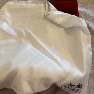 Beautiful black Coach purse with shimmer signature Coach design, shiny leather black straps, silky lavender colored interior, roomy storage inside, used but in great condition, comes with Coach dust bag