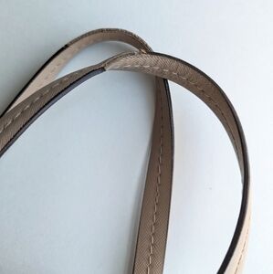 This rounded satchel by Coach has a structured look. The bag is crafted from beige leather and features dual top handles and a Coach tag. The dual zip closure opens to a fabric-lined interior that will hold all your daily essentials. Swing this beauty wherever you go. Shoulder strap not included.