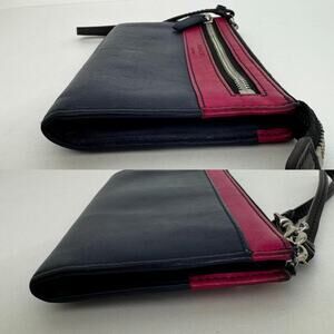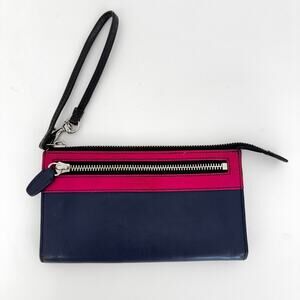 Coach Genuine Leather Legacy Wristlet Navy/Pink Slim Flat Wallet Bag