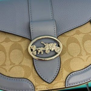 Coach Georgie Saddle Bag In Signature Canvas Light Khaki / Marble Blue
