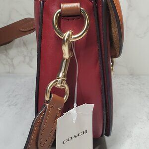 The Coach Georgie Saddle Bag with Colorblock Puffy Quilting is made with leather and featuring a unique colorblock pattern. This bag exudes a fashionable and chic vibe. The adjustable strap adds a practical touch, while the quilted finish adds a sophisticated element to the overall design. This set includes a matching wallet, making it a versatile and coordinated accessory for any outfit or occasion.