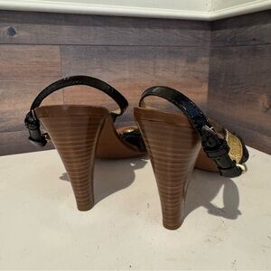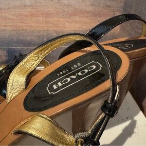 Coach Giuliana Black Gold Leather Ankle Strap Heel, Size 11B Italy Classic