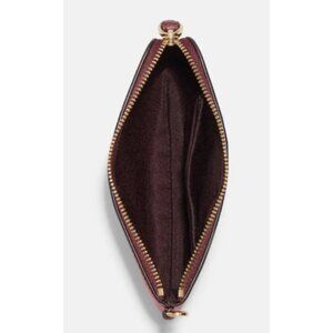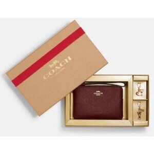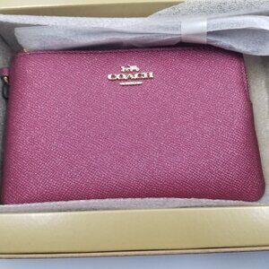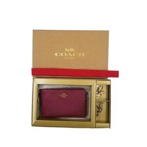 Coach Glitter Leather Corner Zip Wristlet In Box with Charms Cross Grain Red NWT