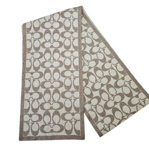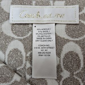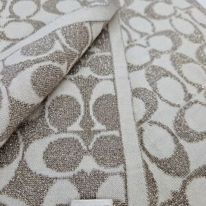 Authentic Coach allover logo rectangle scarf. Double-sided print with metallic threads.