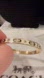 Chic Coach bangle featuring white enamel and gold finish. Adorned with black logo accents and sparkling details.