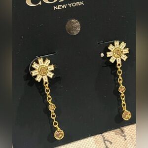 Stylish Coach earrings with a gold chain design. Features elegant drop style. New