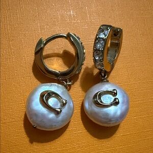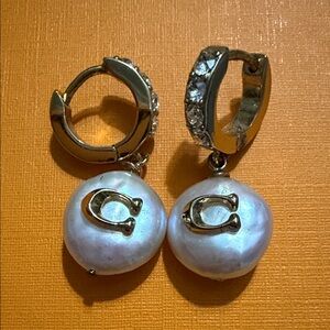 Coach Gold Diamond Mother of Pearl Dangling Earrings
