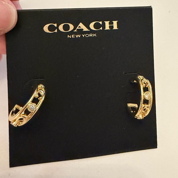 Coach Gold Embellished Hoop Earrings