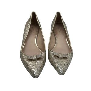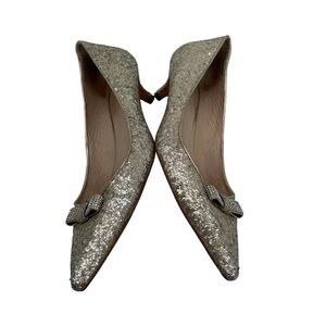 Coach Gold Glitter Rhinestone Bows Monroe Pointed Toe Pumps Size 38 Women’s