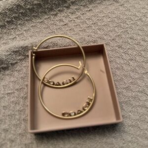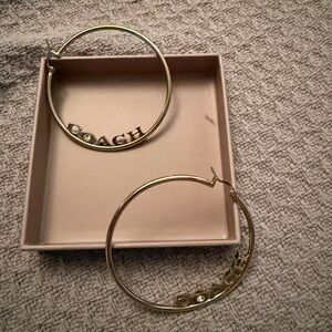 Stylish gold hoops with iconic Coach logo. Ideal for any outfit. Never worn- too large for my face.