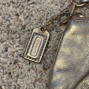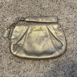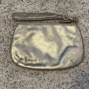 Coach Gold Metallic Soft Leather Wristlet Purse Bag