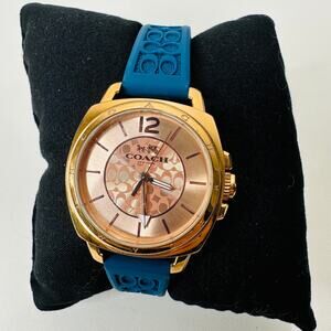 Coach Gold Mini Boyfriend Watch with Signature Blue Rubber Silcone Band