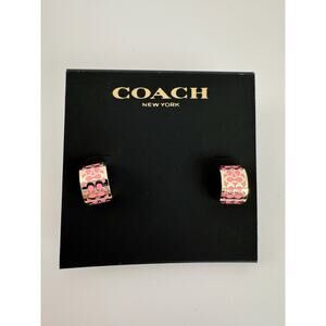 Coach Gold & Pink Signature Enamel Huggie Earrings - NWT!