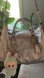 Coach Gold Satchel shimmering handbag, shoulder bag with POP MART the monster