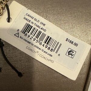 Chic Coach necklace with elegant script design. Features a luxurious gold tone. Ideal for any occasion.